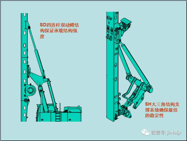 如何兼顾两种结构各自的优势,使其既能最大限度的做到在复杂工况下的稳定性和灵活性,又能具备强悍的硬岩钻进能力?上海金泰SD36多功能钻机可谓是旋挖钻机中“身手敏捷悍将”。SD36多功能钻机具有如下技术特点: