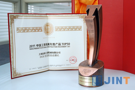 3月27日,在“2011中国工程机械年度产品TOP50”评选颁奖盛典上,上海金泰SX30双轮铣槽机以其对地下连续墙施工技术创新的突出表现,荣登2011年度中国工程机械产品TOP50榜单,这是上海金泰连续6届获此殊荣。