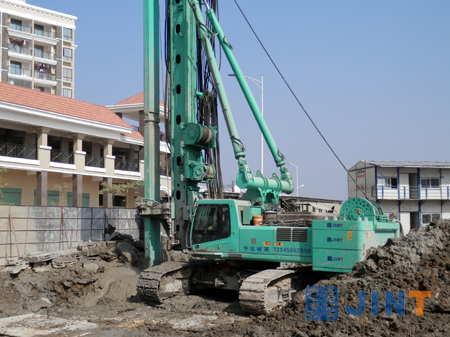 据工程资料显示,该项目地层结构依次为回填土、淤泥层、卵石层和强风化岩层。以SC35钻机施工共需完成256幅0.77米厚、2.8米宽、22米深的地下围护墙槽。SC35不负众望,历时40天以平均每天完成7幅墙槽的效率圆满完成施工任务。本次连续40天大方量的施工证明,上海金泰CSM工法设备已走向成熟。