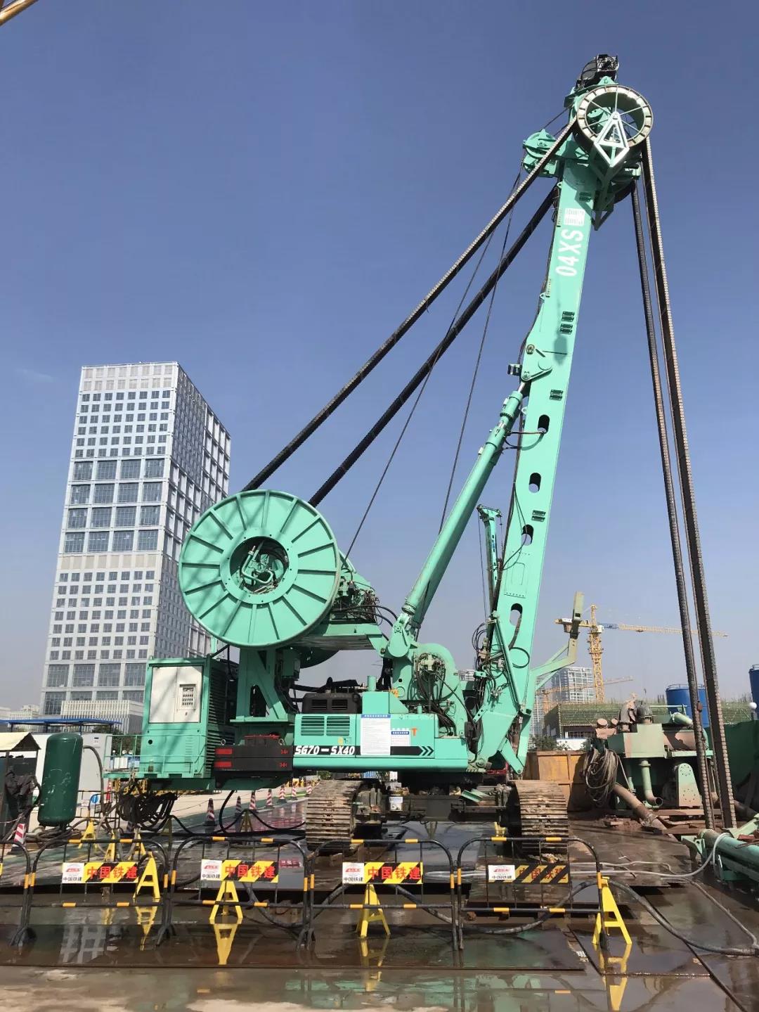 图为2018年4月广州地铁十八和二十二号线横沥站5号井工地,金泰SX40-A、SH30H、SG60A三大主力机型组合接力施工现场