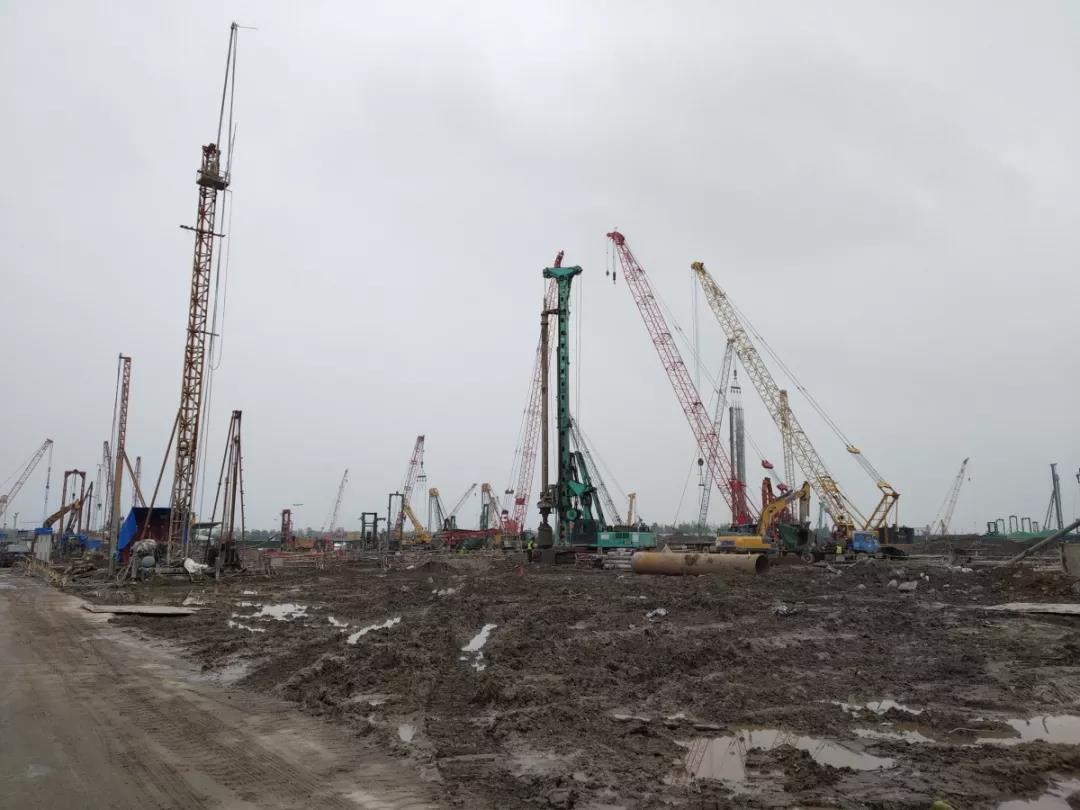 项目现场共有十台金泰主力产品,占据基础施工装备的半壁江山。夺目的“金泰绿”闪亮登场,同台竞技,精彩纷呈。金泰以高性价比、低成本、高稳定性,高效率,赢得了总包方的高度评价。