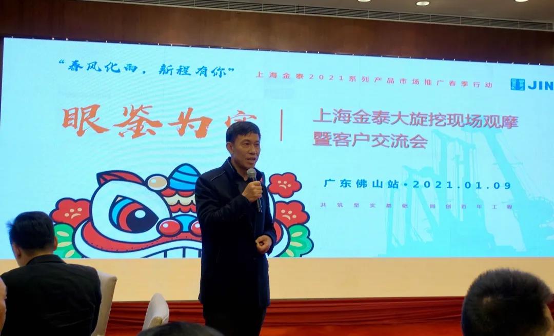 南国春来早,万物竞芳菲,1月9日下午,一场别开生面的上海金泰大旋挖现场观摩暨客户交流会在广东佛山市顺德区举办,以此拉开了上海金泰系列产品2021年春季市场推广大幕。