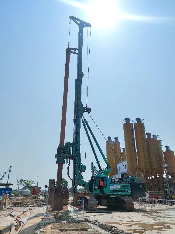为了提高T3航站楼扩建项目地连墙施工的进度与精度,现场均采用“抓钻铣”组合工艺进行施工。该施工工艺久经市场考验,成墙效率可提升40%以上。另外,“成墙快不快的关键,还得看旋挖引的直不直”。白云机场T3航站楼扩建项目对于垂直精度有着严苛的验收标准,现有多台旋挖设备引孔未能符合要求,金泰SH38旋挖钻机凭借自身深厚的技术底蕴,无论在硬地层和超深引孔均无一偏孔,施工顺畅,得到了现场项目部的一致认可。