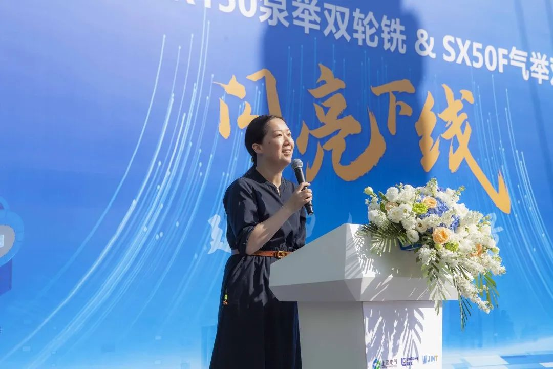 丁静羽副董事长也在庆典上致辞。她表示:“上海金泰作为上海机电的重要成员,一直以来都秉承‘创新、务实、高效、共赢’的企业精神。SX150泵举双轮铣与SX50F气举双轮铣的成功下线,不仅展示了上海金泰的技术实力,更体现了我们对客户需求的深刻理解和精准把握。未来,我们将继续支持上海金泰的发展,共同推动中国桩工装备行业的进步。”