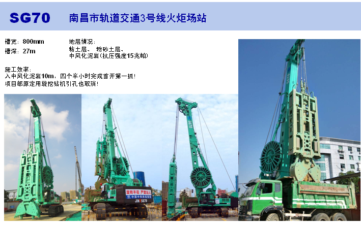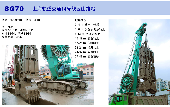 SG70 液压连续墙抓斗选用进口康明斯QSM11 电喷涡轮增压发动机(欧Ⅲ),动力强劲,低噪音,低排放,采用了可靠、稳定、高性能的品牌液压元件;采用了双卷扬工作,提升和下放更快,成槽效率明显提高并改善了燃油经济性;采用先进的可编程的测斜装置,记录并存储抓斗的挖掘作业过程。成槽效率更快,深槽挖掘能力更大,更具节能高效环保功能,控制系统及稳定性方面进一步提升 。